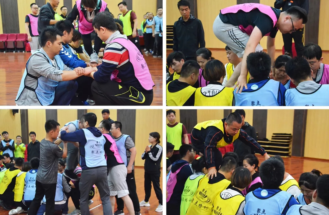 准备工作结束后,开始了第一个游戏——达芬奇密码,要求所有团队成员每人只有一次机会,由-队长在赛前带领团队制定挑战方案,比赛中按顺序翻开由A到K的扑克牌,用时最短组胜利。此项目为促进队员之间传递信息、沟通信息和协作能力,为了完成挑战任务,每个队伍都使出浑身解数,积极讨论,头脑风暴。最终,“蓝翔队”以最快的速度完成“解码”获得第一名,上午的时间匆匆而过,每个人都感到意犹未尽。