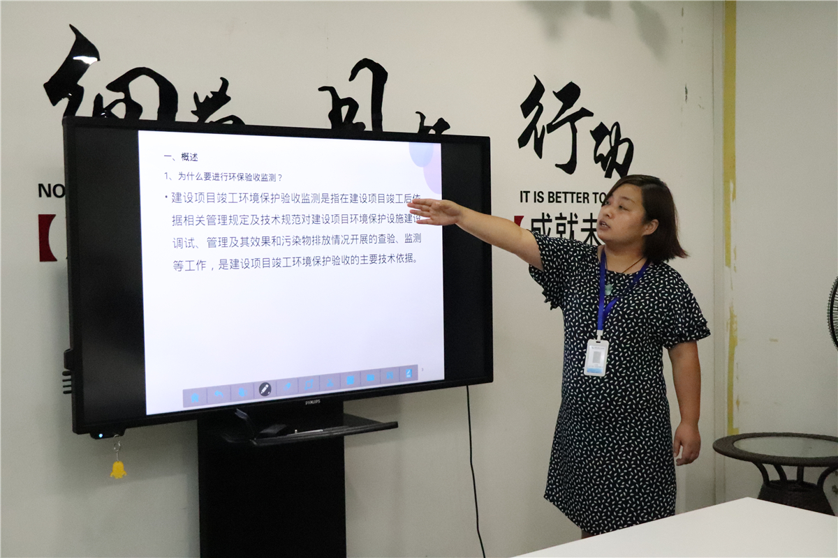 此次定制了第三季度的培训方案,在每个周六下午进行专题培训。培训主题包括《环保管家概述》、《环境影响评价》、《环境质量现状监测培训》、《建设用地土壤污染状况调查简介》、《建设项目竣工环境保护验收》等方面,从法律依据、规范要求、业务来源、风险点、工作规范流程、销售业务洽谈需要掌握的技能等方面进行详细的讲解,并结合公司现有案例进行讨论。