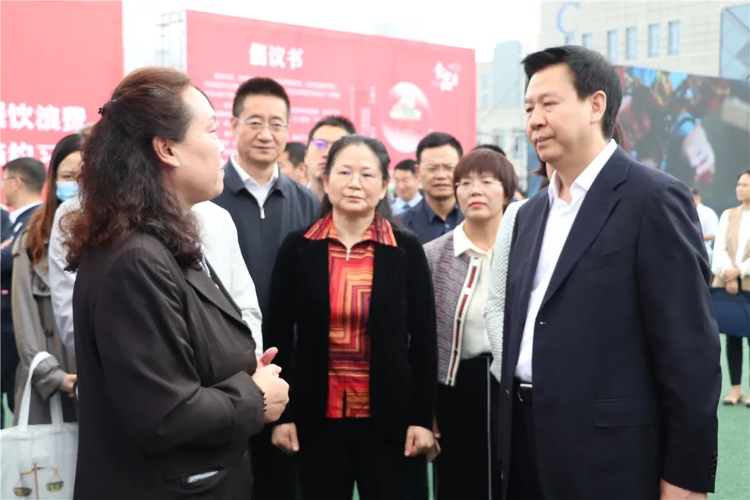 与会各级领导来到科仪阳光检测展示点前并与公司副总经理李红光就食品安全保障问题进行技术交流