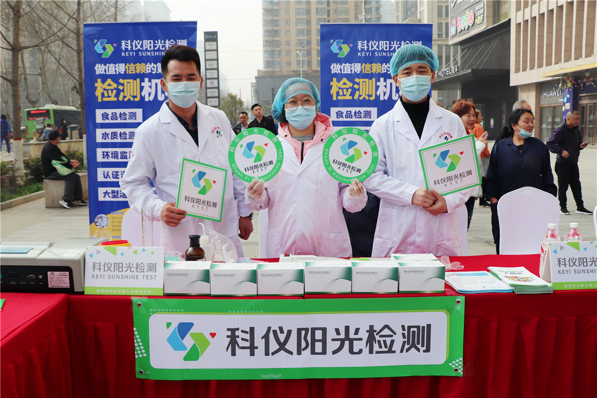 为纪念第39个国际消费者权益日,在3·15国际消费者权益保护日当天,西安市各区积极举办了以“守护安全,畅通消费”为主题形式多样的宣传展示活动。各区相关单位负责同志,辖区企业代表、新闻媒体代表和社会各界群众代表参加活动。陕西科仪阳光检测技术服务有限公司受邀参与未央区、新城区、灞桥区、西咸新区的宣传展示活动,并分别在活动现场设立食品安全保障点进行宣传科普工作。