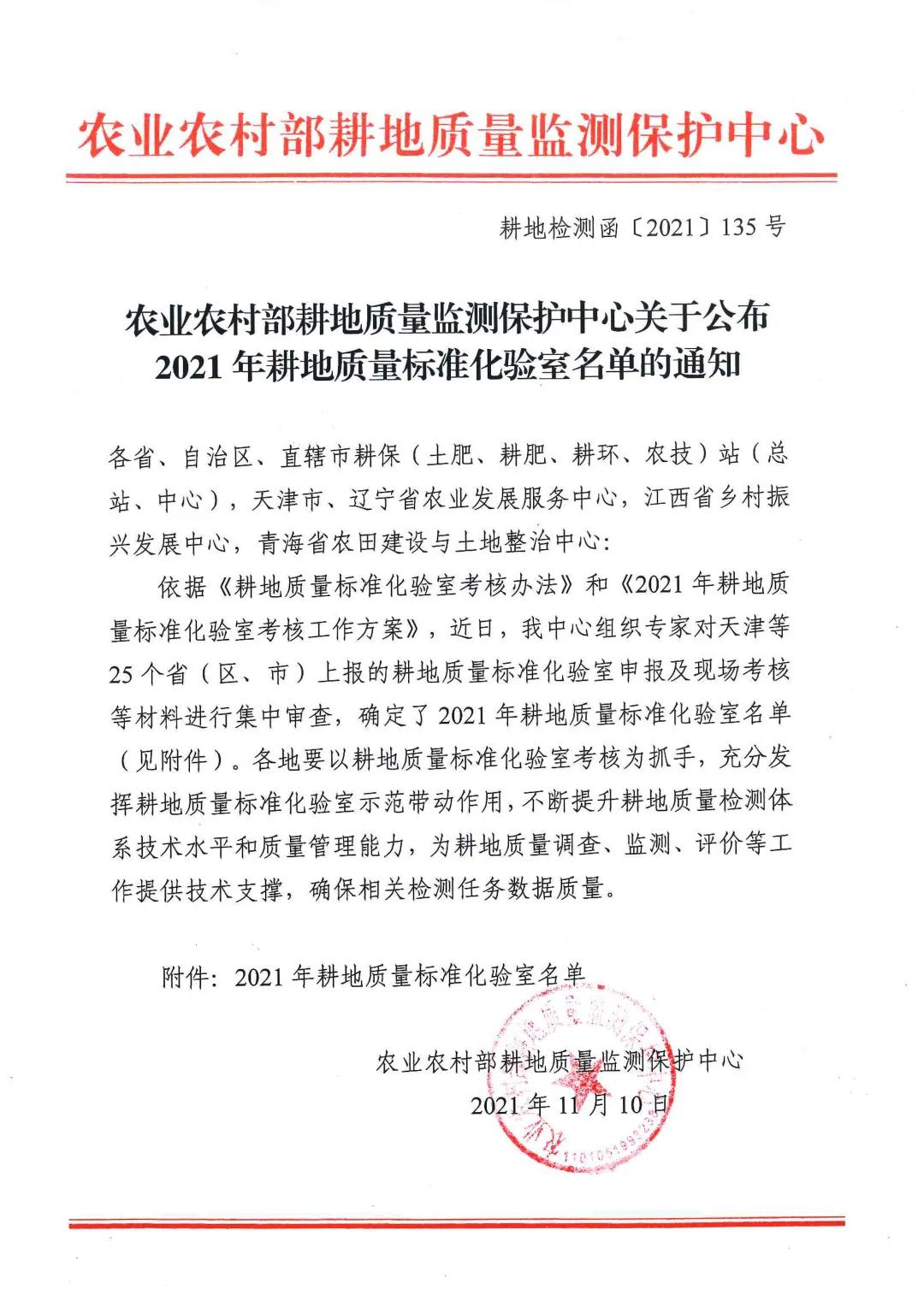 依据《耕地质量标准化实验室考核办法》和《2021年耕地质量标准化实验室考核工作方案》,农村农业部耕地质量监测保护中心组织专家对天津等25省(区、市)上报的耕地质量标准化实验室申报及现场考核等材料进行集中审查,最终确定了92家耕地质量标准化实验室名单,其中陕西共计8家。